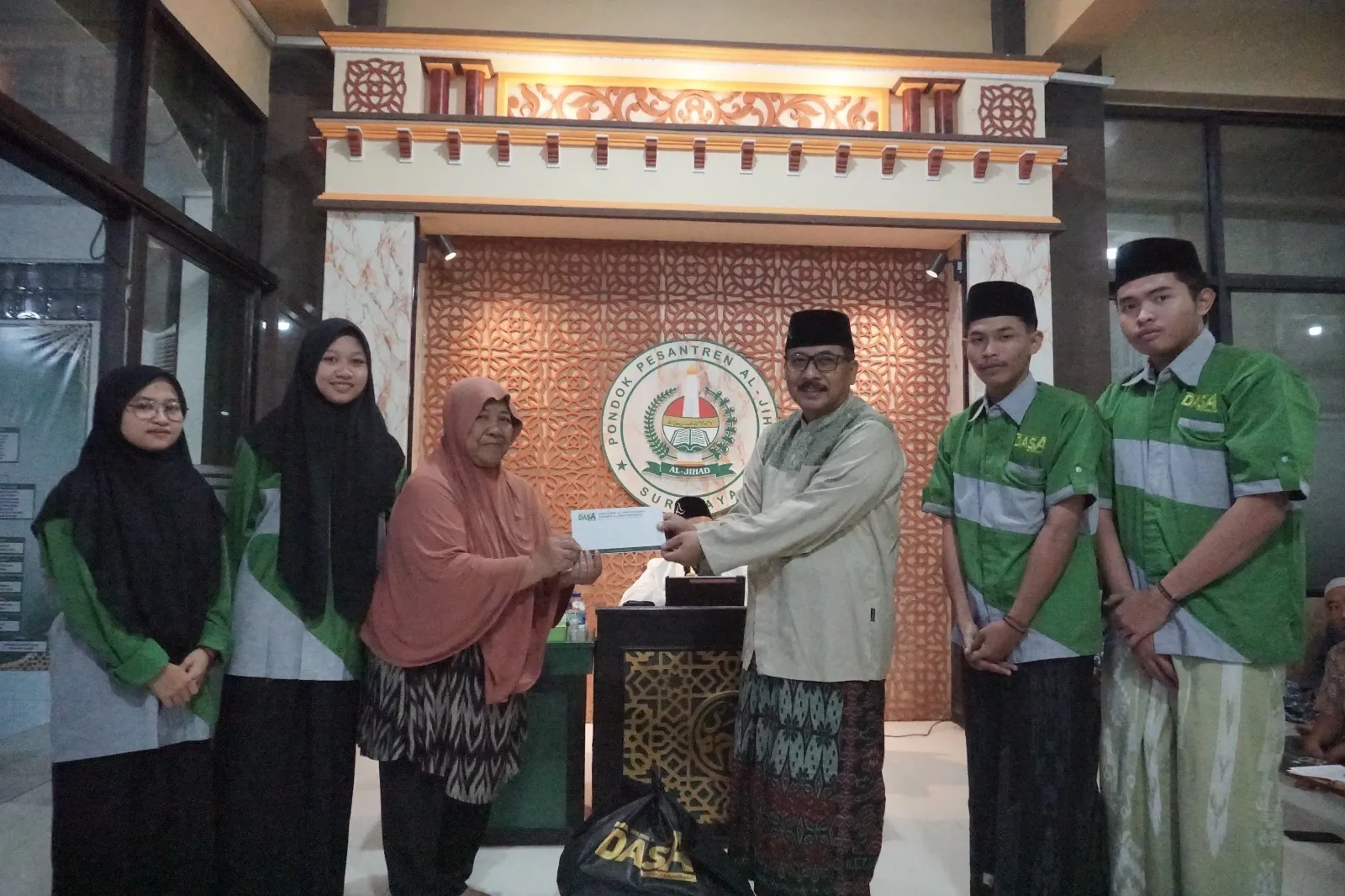 Adapun bantuan tersebut diserahkan oleh Abah Kyai Imam Chambali, selaku Pengasuh Pondok Pesantren Al-Jihad Surabaya, dan Abah Kyai Syukron, selaku Direktur DASA Al-Jihad. Serta didampingi oleh sebanyak 5 orang pengurus, perwakilan DASA Al-Jihad.