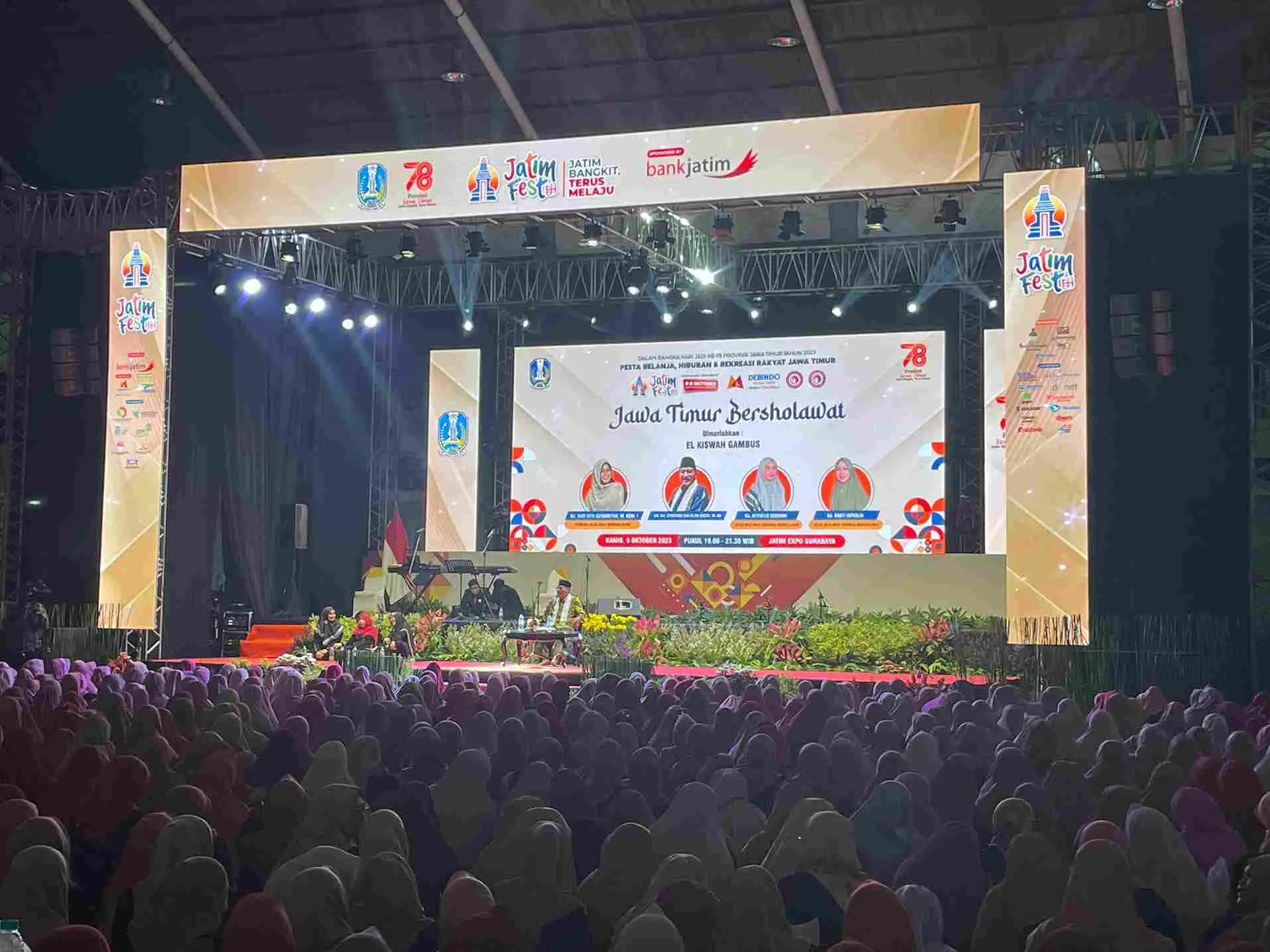 KH Sukron Djazilan mengajak kepada seluruh jama’ah untuk selalu mengingat Rasulullah Saw dengan membaca sholawat setiap saat. Ungkapan itu disampaikan saat Peringatan Maulid Nabi Muhammad Saw sekaligus Milad Pertama Muslimah Surabaya Bersholawat yang digelar di Jatim Expo, Kota Surabaya, Kamis (05/10/2023).
