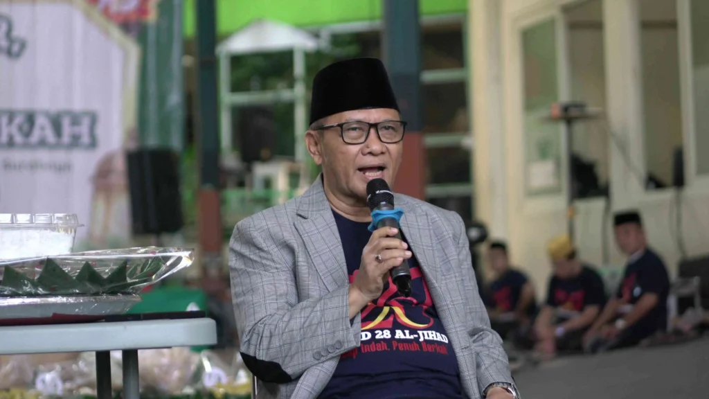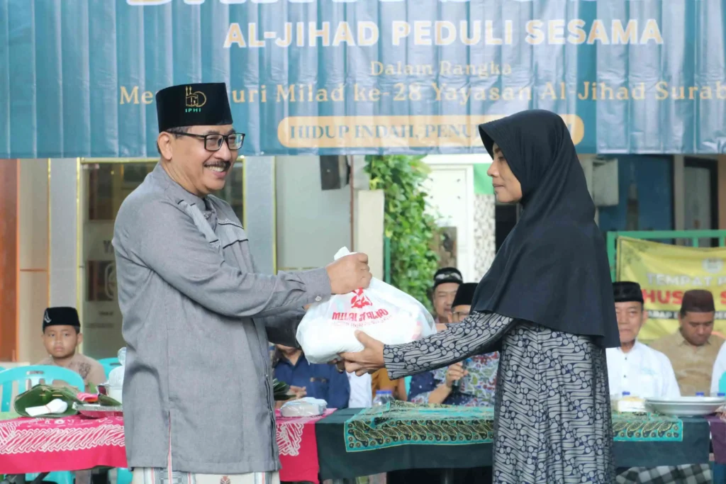 Surabaya – Suasana kebersamaan dan keberkahan terasa di Pondok Pesantren Al-Jihad Surabaya pada Sabtu (25/04/2026). Sekitar 70 tumpeng menghiasi halaman pondok sebagai simbol rasa syukur dalam rangka Milad ke-28 tahun. Kegiatan ini turut dihadiri oleh sejumlah tokoh, di antaranya H. Imam Utomo Soeparno (Gubernur Jawa Timur periode 1998–2008), pengurus yayasan, para santri, serta masyarakat sekitar. Dalam kegiatan tersebut, terdapat dzikir dan do’a bersama sebagai representasi nilai-nilai keagamaan, sementara tumpeng mencerminkan kearifan budaya Islam khas Indonesia.