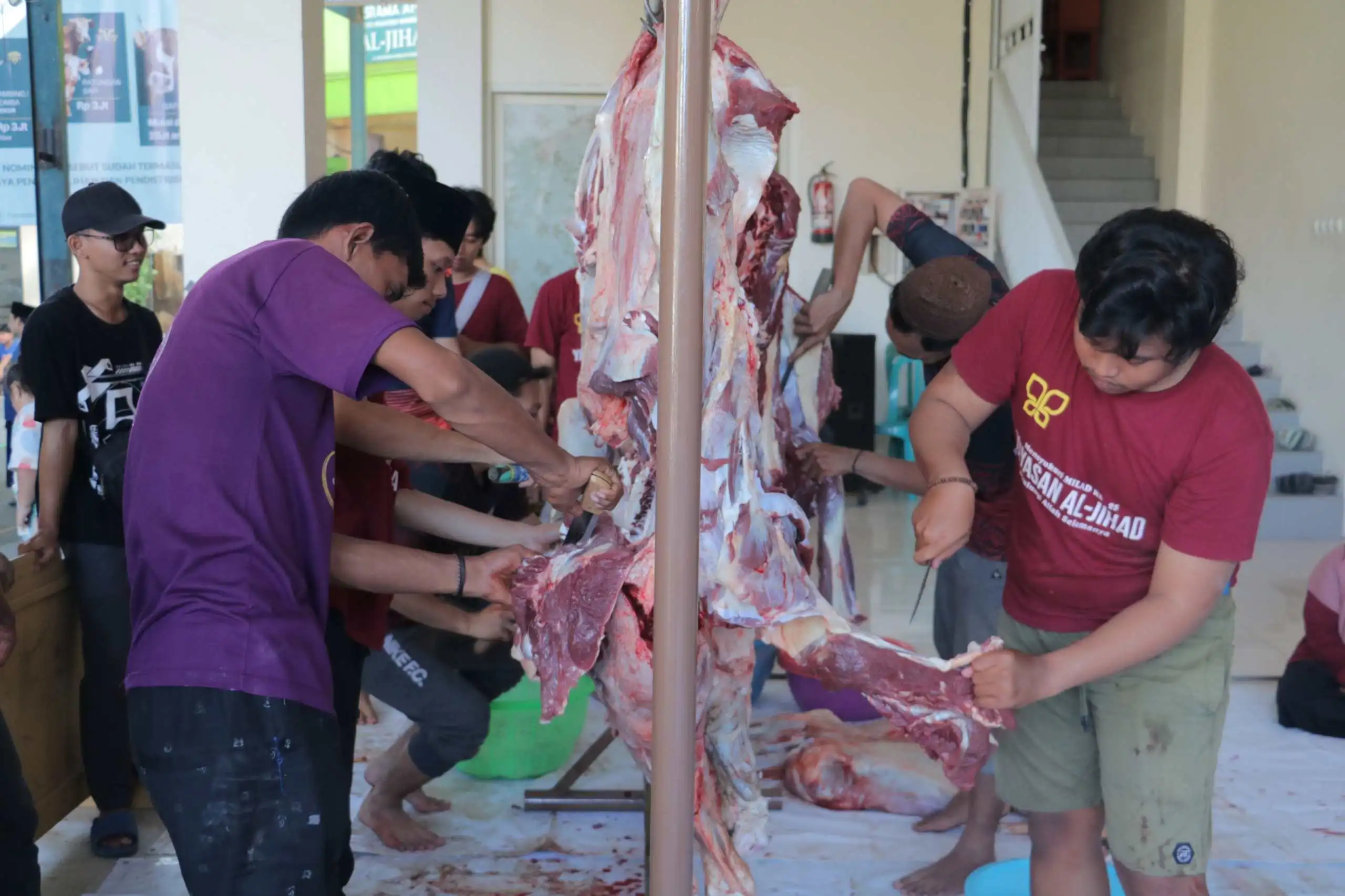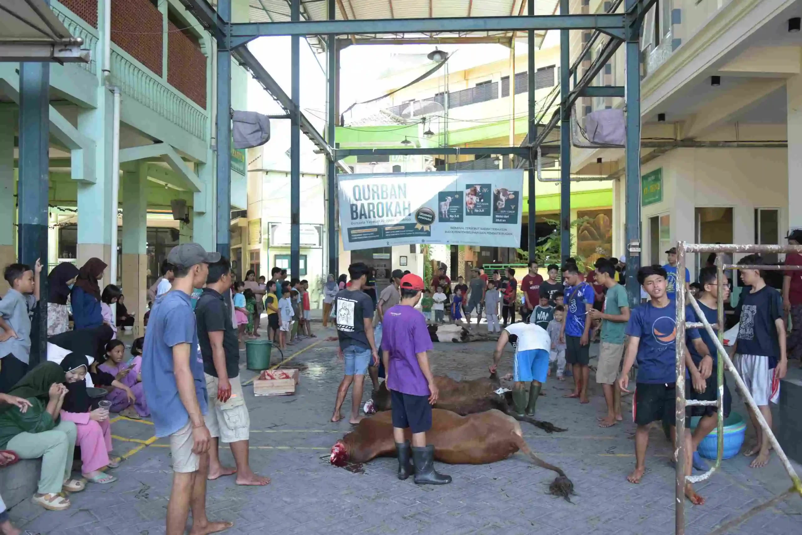 Penyembelihan hewan qurban dilaksanakan di halaman Pondok Pesantren Al-Jihad Surabaya dan dilanjutkan dengan pembagian daging qurban kepada masyarakat yang berlangsung dengan tertib dan lancar. “Saya harap semua yang berkurban dibalas oleh Allah dengan rezeki yang lebih baik dan lebih banyak lagi serta dapat memberikan kegembiraan di hari raya Idul Adha pada saudara-saudara kita sekitar Al-Jihad dan semua pondok cabang yang sudah dititipi, tentu dengan qurban ini harapannya dapat mendekatkan diri kita kepada Allah Swt.” pungkas Abah Ikhwan.